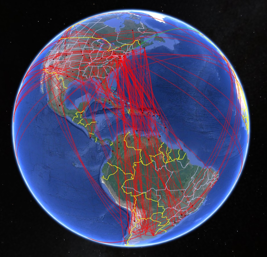 whose licenses are issued by the US FCC (centroid of zipcode and US state) the DXCC entities present